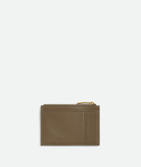 Intrecciato nappa leather card case. Product Details - Three card slots, one additional pocket, one zipped coin purse with gusset - Material: lambskin - Lining: Calfskin - Color: Pinecone - Hardware: Gold finish - Height: 8.2 cm | 3.2” - Width: 12cm | 4.7” - Depth: 0.5 cm | 0.2” - Made in: Italy - Product code: 806032VCPP32355