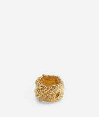 Ring with signature Intreccio pattern, crafted in hand-polished 18k gold-finished Product Details - 18k gold-finish sterling silver ring with cubic zirconia - Width: 16.8 mm | 0.7" - Thickness: max 3.5 mm | 0.1" - Material: Sterling silver, cubic zirconia - Color: White - Made in: Italy - Product code: 838184VBOB69000