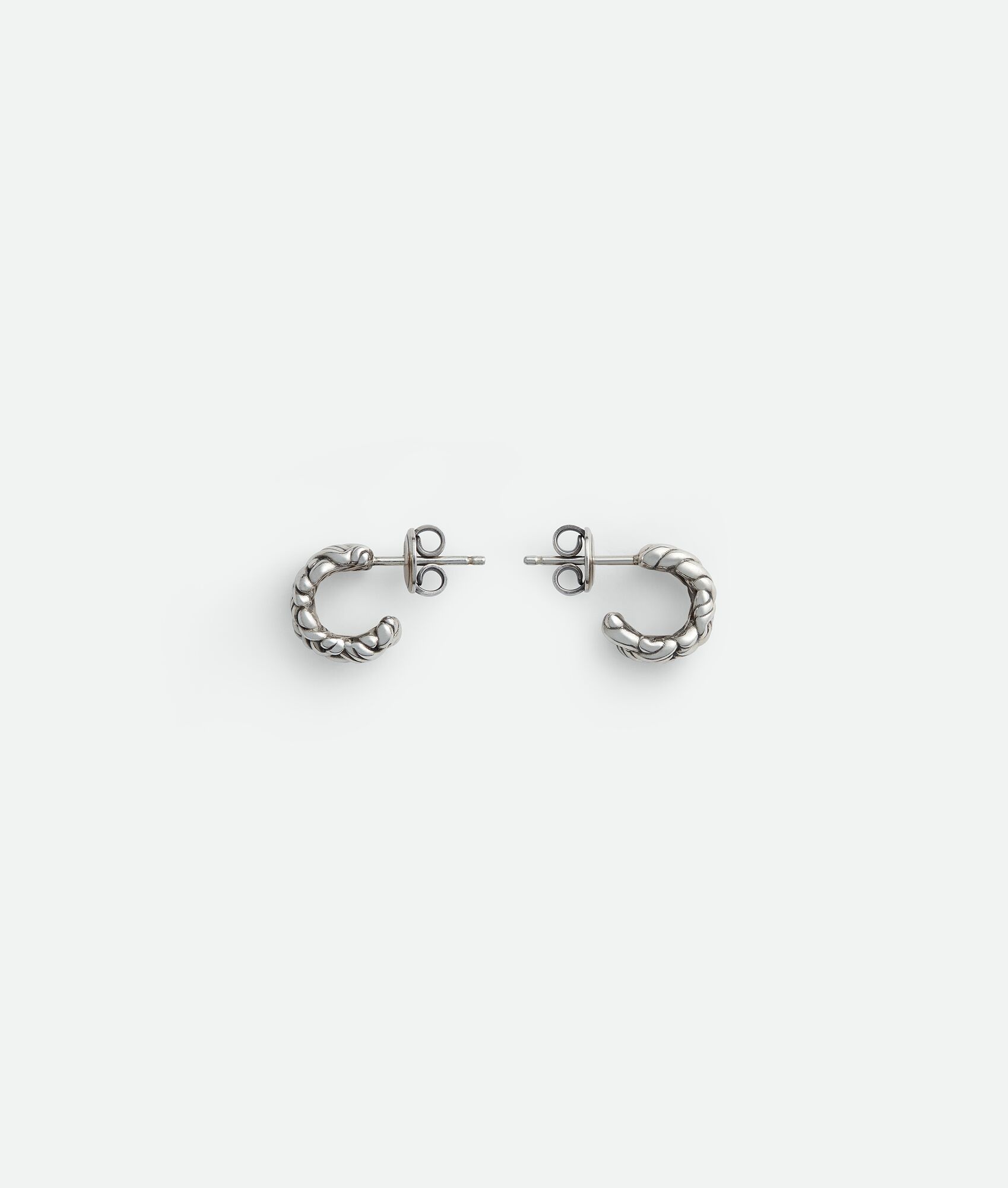 Earrings with signature Intreccio pattern crafted in hand-polished sterling silver. Product Details - Sterling silver small earrings - Pin butterfly closure - Material: sterling silver - Color: Silver - Due to hygiene-related reasons, this piece may not be returned - Made in: Italy - Product code: 795574V50708117