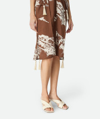 Midi dress in lightweight silk shantung with Italian postcard print and tassel details. Product Details - Italian postcard printed silk shantung midi dress - Zipper closure - Tassel details - Regular fit - Color: Pecan/Dove - Made in: Italy - Product code: 834968V5T802154 Size & Fit - Model is 178 cm | 5'10" and is wearing a Bottega Veneta size 38