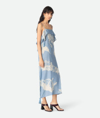 Product Details - Italian postcard printed silk shantung long dress - Adjustable straps - Tassel details - Regular fit - Color: Blue/Dove - Made in: Italy - Product code: 834966V5T804773 Size & Fit - Model is 178 cm | 5'10" and is wearing a Bottega Veneta size 38