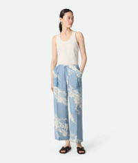 Product Details - Italian postcard printed silk shantung pants - Straight leg - Elasticated waistband - Tassel details - Color: Blue/Dove - Made in: Italy - Product code: 841676V5T804773 Size & Fit - Model is 178 cm | 5'10" and is wearing a Bottega Veneta size 38