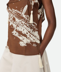 Product Details - Italian postcard printed silk shantung top - Adjustable straps - Tassel details - Regular fit - Color: Pecan/Dove - Made in: Italy - Product code: 834965V5T802154 Size & Fit - Model is 179 cm | 5'10" and is wearing a Bottega Veneta size 38