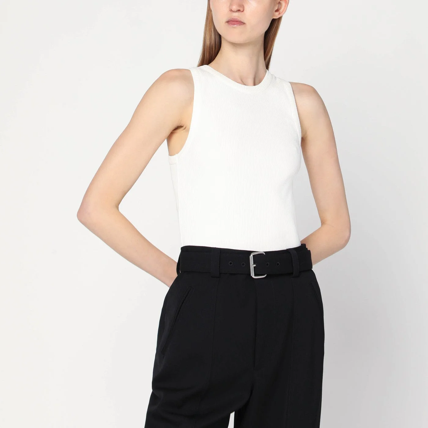 Ivory ribbed tank top in cotton blend