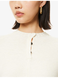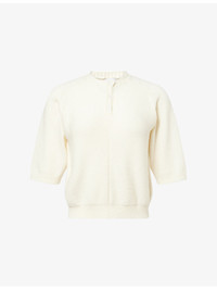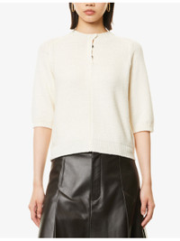 PRODUCT DETAILS - Bottega Veneta wool knitted top - 100% wool - Button fastening - Regular fit, round neck, short sleeves, brushed texture, ribbed trims - Dry clean only - True to size - Model is 5ft 10in/1.78m and wears a size small - Lightweight, stretchy Ref: R04462018