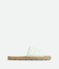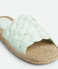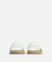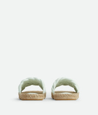 Espadrille sandal realised in soft lambskin with foulard Intreccio craftsmanship. Product details • Foulard Intreccio leather espadrille sandal Material: 100% Lambskin • Unlined • Color: Glacier • Rubber-injected jute outsole Made in: Spain