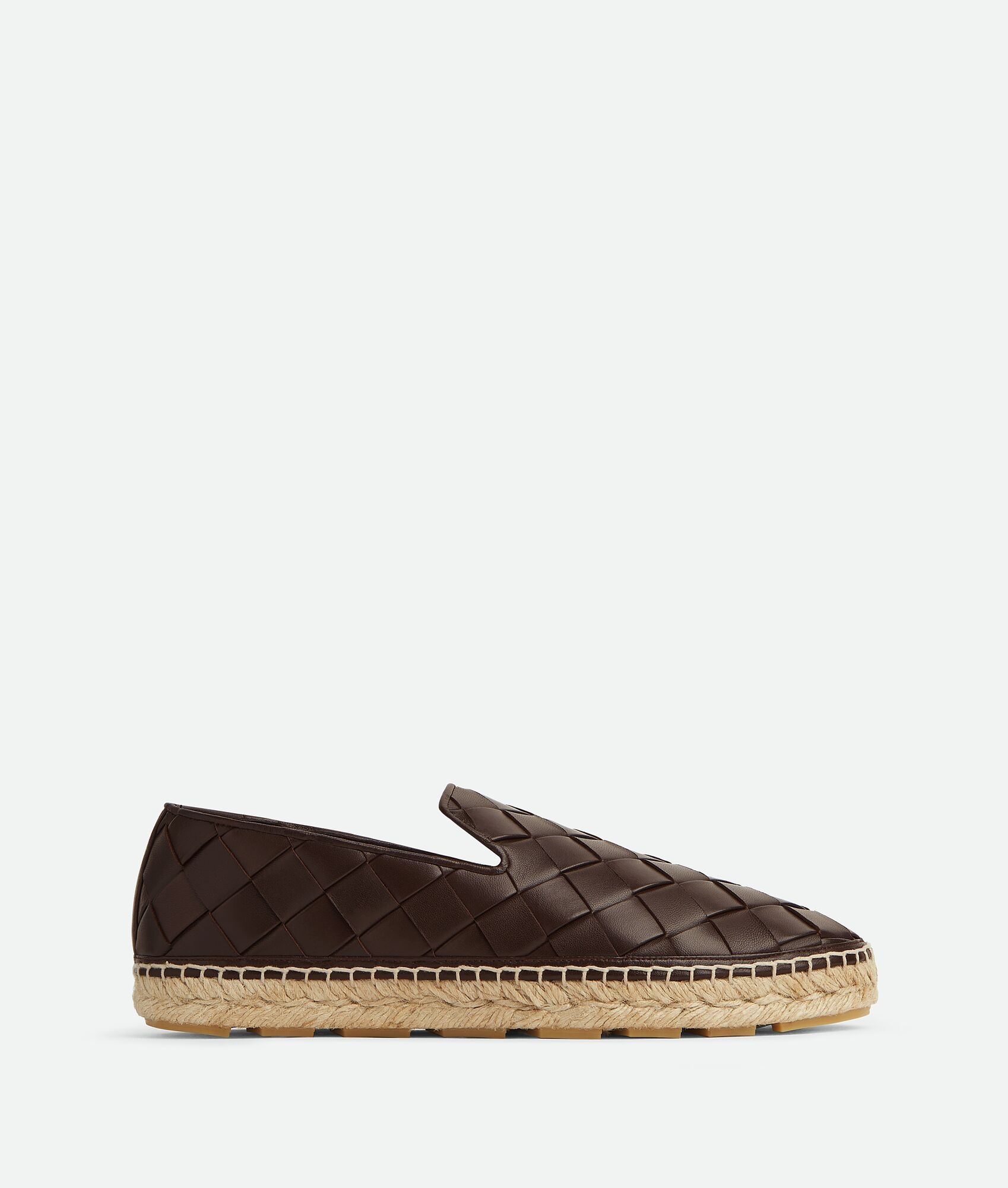 Espadrille realised in soft lambskin with all-over padded Intrecciato craftsmanship. Product Details - Padded Intrecciato leather slip-on espadrille - Material: Lambskin - Lining: Lambskin - Color: Fondant - Rubber-injected jute outsole - Made in: Spain - Product code: 775340V2ED12113