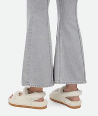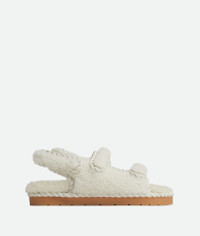 Flat slingback sandal realised in shearling sheepskin with torchon piping. Features Product Details - Shearling leather flat slingback sandal with torchon embellishment - Ergonomic insole - Material: shearling - Lining: Coated fabric - Color: Popcorn - Rubber outsole - Made in: Italy - Product code: 775343V4VB19202