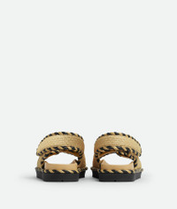 Flat slingback sandal in raffia with torchon piping and ergonomic insole. Product Details - Raffia flat slingback sandal with torchon embellishment - Ergonomic insole - Material: Polyamide, Cotton - Lining: coated fabric - Color: Natural/Black - Rubber outsole - Made in: Italy - Product code: 788958V43Y19220