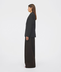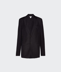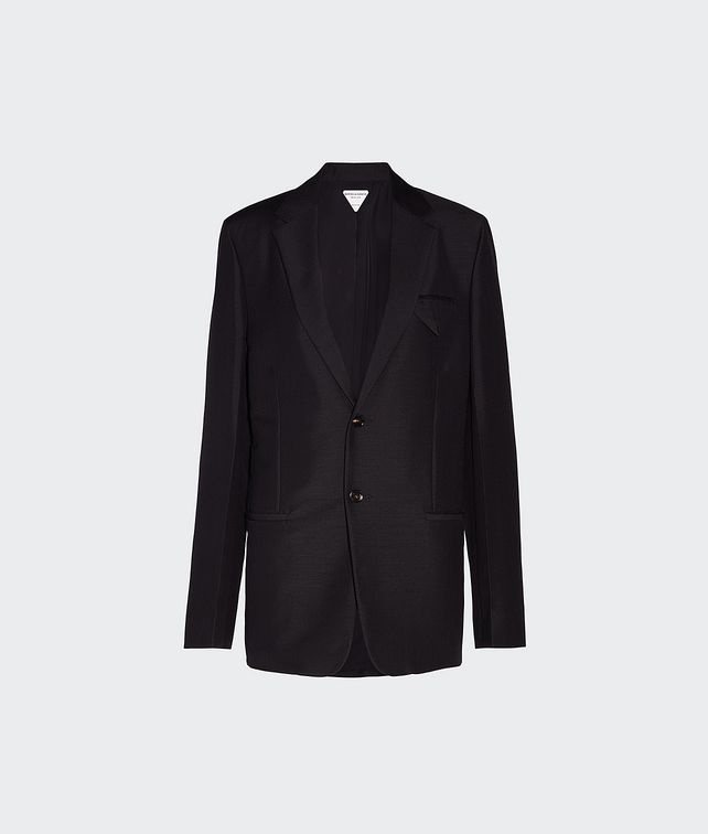 • Tailored jacket in washed mohair • Lightweight canvas construction • Shoulder pads for a sharp silhouette • Peak lapel with melton under collar • Single-breasted fastening with two horn buttons • Signature triangular fold at the chest, two pockets at the front and two interior pockets • Center back split • Fully lined • Designed for a precise fit DETAILS Composition: 100% Mohair wool Color: Black Made in Italy