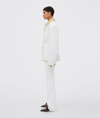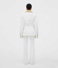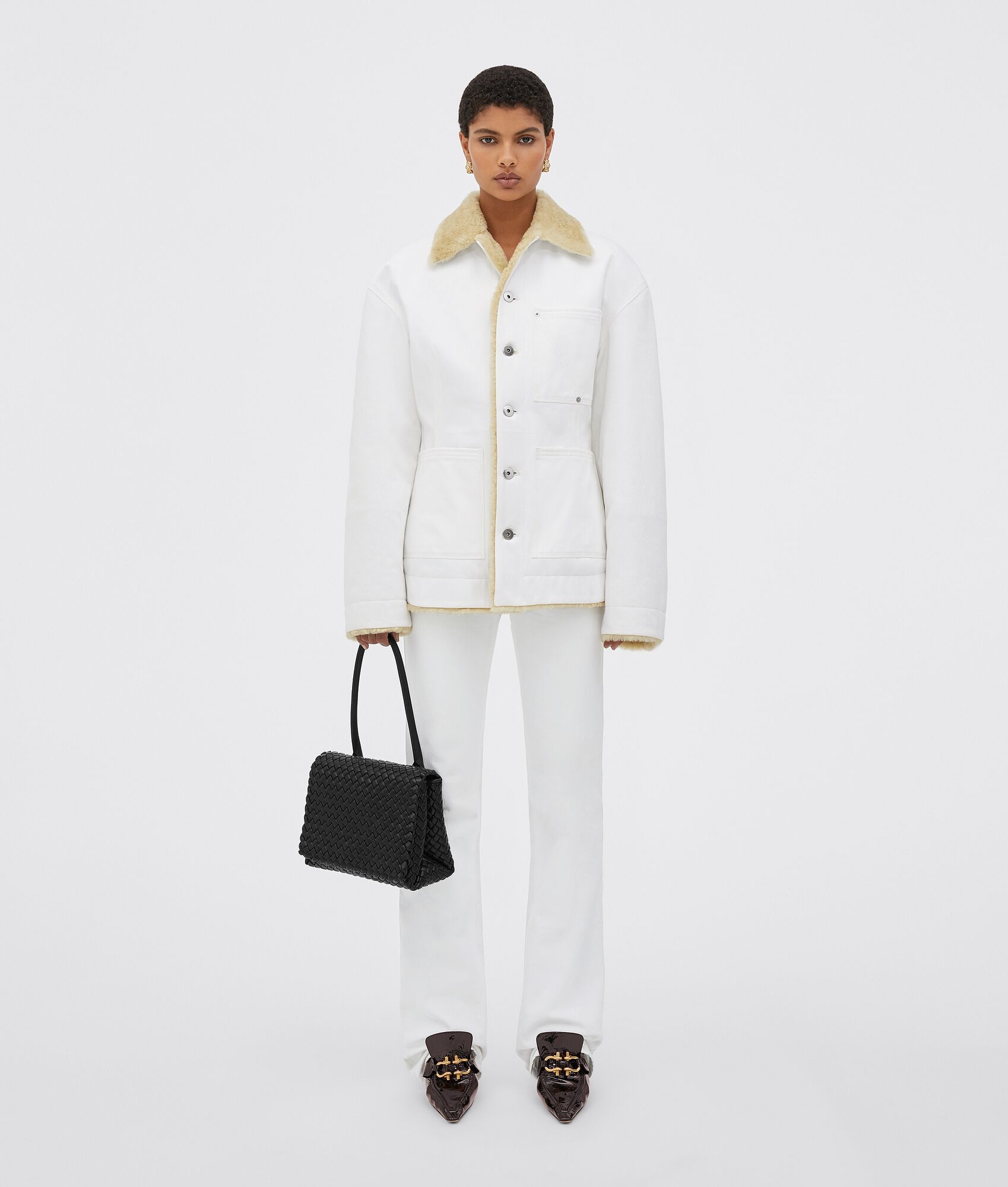 • Denim and shearling jacket • Button closure • Sculptural fit Material: 60% Denim, 40% Wool • Color: White/Birch Made in: Italy