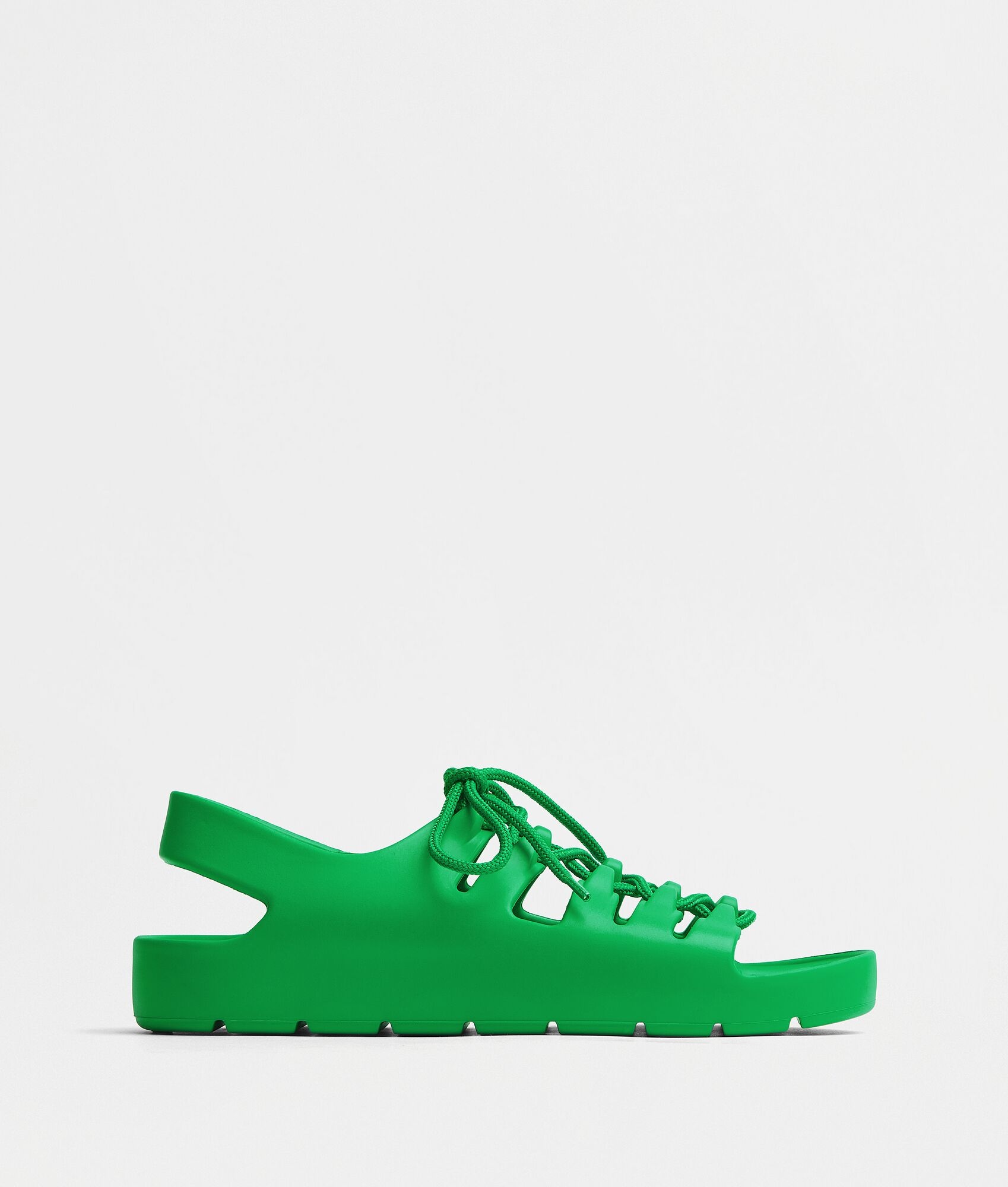 • Rubber lace-up flat sandals Material: 100% Rubber • Unlined • Color: Grass • One-piece molded shoe • Flatform: 3.5 cm | 1.4" Made in: italy
