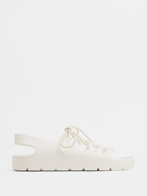 • Ultra lightweight rubber lace-up flat sandals Material: 100% Rubber • Unlined • Color: Cranberry • One-piece molded shoe • Platform: 3.5 cm | 1.4" Made in: italy