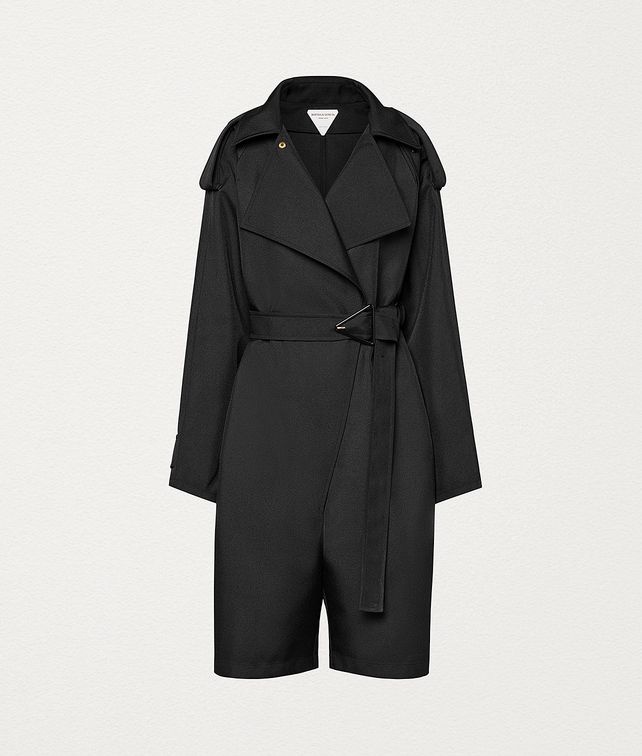 • Trench-style short jumpsuit • Self-fastening waist belt with signature triangular buckle • Button-fastening cuffs and shoulder epaulettes • Popper buttons to attach the collar to the shoulder • Pockets at sides • Unlined • Designed for a relaxed fit DETAILS Composition: 100% Polyester Color: Nero Made in Italy
