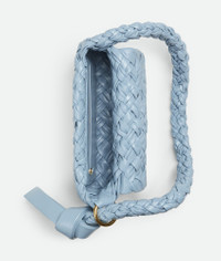Shoulder bag in soft foulard Intreccio leather with sliding shoulder strap, metallic Product Details - Foulard Intreccio leather shoulder bag - Sliding shoulder strap with metallic ring and knotted end - Single interior zipped pocket - Magnetic closure - Material: calfskin - Unlined - Color: Ice - Hardware: Brass finish - Height: 18 cm | 7.1" - Width: 25 cm | 9.8" - Depth: 5.5 cm | 2.2" - Strap drop: 30 cm | 11.8" - Made in: Italy - Product code: 785797V40T01728