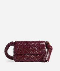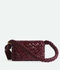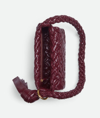 Shoulder bag in soft foulard Intreccio leather with sliding shoulder strap, metallic Product Details - Foulard Intreccio leather shoulder bag - Sliding shoulder strap with metallic ring and knotted end - Single interior zipped pocket - Magnetic closure - Material: calfskin - Unlined - Color: Barolo - Hardware: Brass finish - Height: 18 cm | 7.1" - Width: 25 cm | 9.8" - Depth: 5.5 cm | 2.2" - Strap drop: 30 cm | 11.8" - Made in: Italy - Product code: 785797V40T02250