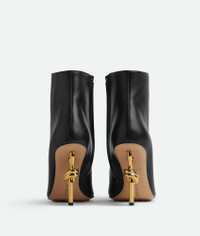 Ankle boot with gold finished metal knot heel. Realised in smooth calfskin with a Product Details - Leather ankle boot - Signature knot galvanized heel - Material: Calfskin - Lining: Lambskin - Color: Black - Hardware: Brass finish - Heel: 9 cm | 3.5" - Made in: Italy - Product code: 763831V3M701000