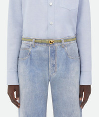 Leather belt. Product Details - Leather belt - Pin closure - Material: calfskin - Lining: Calfskin - Color: Travertine - Hardware: Brass finish - Height: 1.2 cm | 0.5" - Depth: 0.5 cm | 0.2" - Made in: Italy - Product code: 743753VALKO2929