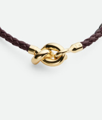 Product Details - Braided nappa leather and 18k gold-finish sterling silver bracelet - Knot with integrated hook closure - Color: Dark Barolo - Made in: Italy - Product code: 846029VAHUA2241 Material - Material: Sterling silver Size & Fit - Knot dimensions: 17 x 11 mm | 0.7 x 0.4" - Coaxial diameter: 3 mm | 0.1" - Size S: 16.5 cm | 6.5" - Size M: 18 cm | 7.1" - Size L: 19.5 mm | 0.8"