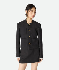 Collarless jacket in lightweight structured cotton with knot button detailing. Product Details - Lightweight structured cotton jacket - Metal knot buttons closure - Fully lined - Regular fit - Color: Anthracite - Made in: Italy - Product code: 811685V5UP01370 Size & Fit - Model is 176 cm | 5'9" and is wearing a Bottega Veneta size 38