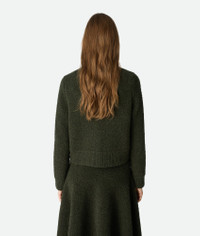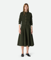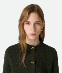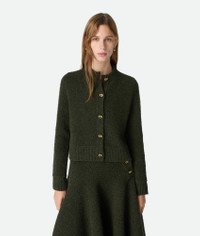 Cardigan in wool boucle with metal knot button detailing. Product Details - Wool boucle cardigan - Metal knot buttons closure - Regular fit - Color: Dark Green - Made in: Italy - Product code: 812469V4WQ03350 Material - Material: 100% Wool Size & Fit - Model is 179 cm | 5'10" and is wearing a Bottega Veneta size S