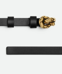 Product Details - Calfskin leather belt - Metal knot buckle - Pin closure - Lining: Calfskin - Color: Black - Hardware: Muse Brass finish - Made in: Italy - Product code: 855235VALKO1019 Material - Material: Calfskin Size & Fit - Height: 2 cm (0.8") - Depth: 0.5 cm (0.2")