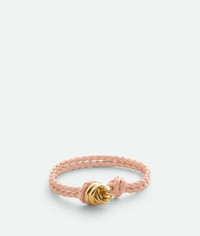 Bracelet in braided leather with signature knot crafted in 18k gold-finished sterling Product Details - 18k gold-finish sterling silver and braided leather bracelet - Knot dimensions: 16.8 x 13.3 mm | 0.07” x 0.06” - Material: Lambskin, sterling silver - Color: Cameo - Made in: Italy - Product code: 815938VAHUA6806