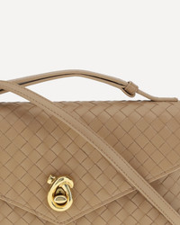 Bottega Veneta's Knot Lock Shoulder Bag is made of lambskin leather, with a sophisticated design and the brand's iconic woven pattern. It features a flat top handle, an adjustable and removable shoulder strap for different wearing options. The closure features the iconic Knot Lock on the front, while on the back you find a slit pocket. Inside, the bag offers two compartments and a card slot, combining elegance and functionality in one accessory. DETAILS - Sku: 817191V08Z0_2788 - Season: AW25 - Dimension: 25x25x5.5 - Composition: GENERAL 100% Lamb Ovis Aries Aries - MADE IN ITALY