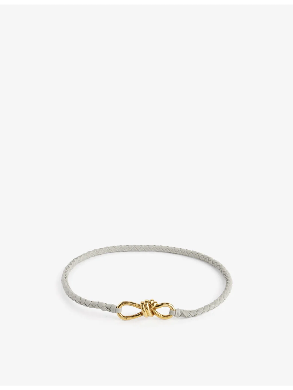 PRODUCT DETAILS - Bottega Veneta leather belt - 100% lamb leather; hardware 100% brass - Clasp fastening - Knot design plaque, engraved branding, all over mini double-faced weave, gold-toned hardware - Specialist dry clean only - Length: 74cm - Width: 1cm - Made in Italy - Comes with a dust bag Ref: R04253174