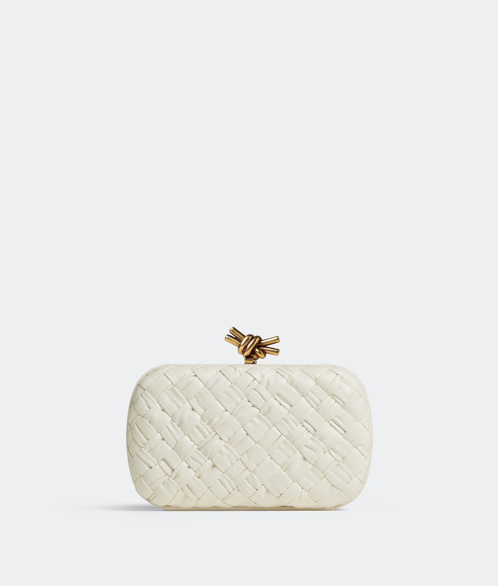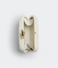 Minaudiere clutch meticulously Craft.ed from foulard Intreccio leather with signature Product Details - Foulard Intreccio leather minaudiere - Single compartment - Metallic knot clasp closure - Material: Calfskin - Lining: Calfskin - Color: Bone - Hardware: Brass finish - Height: 12 cm | 4.7" - Width: 20 cm | 7.9" - Depth: 5.5 cm | 2.2" - Made in: Italy - Product code: 717622V2H419233 Size & Fit - Fits an iPhone Pro, a credit card case, airpods and keys.