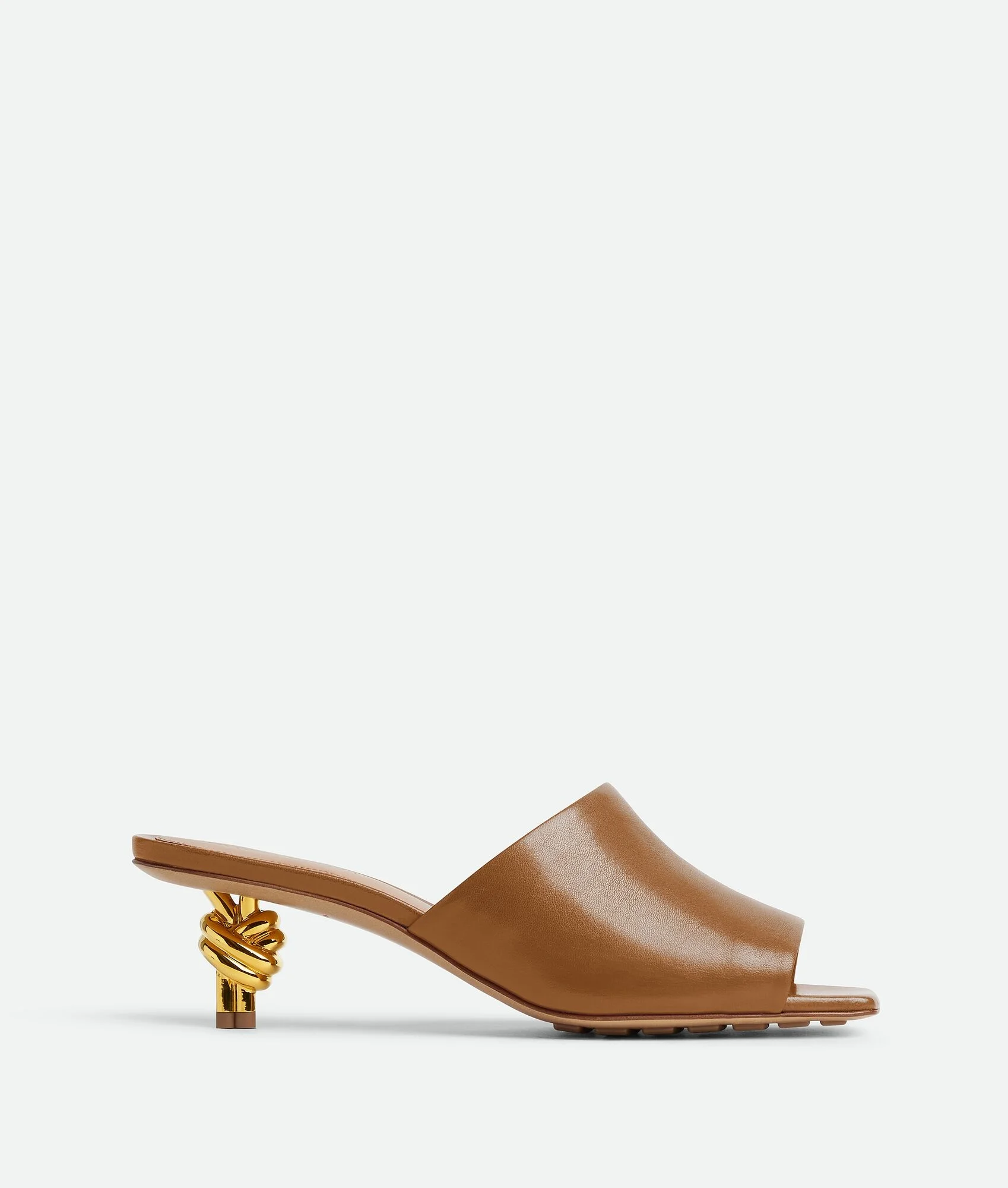 Mule with gold finished metal knot heel. Realised in soft lambskin. Product Details - Leather mule - Signature knot galvanized heel - Material: Lambskin - Lining: Lambskin - Color: Wood - Hardware: Brass finish - Heel: 4.5 cm | 1.8" - Made in: Italy - Product code: 764401VBSF02628