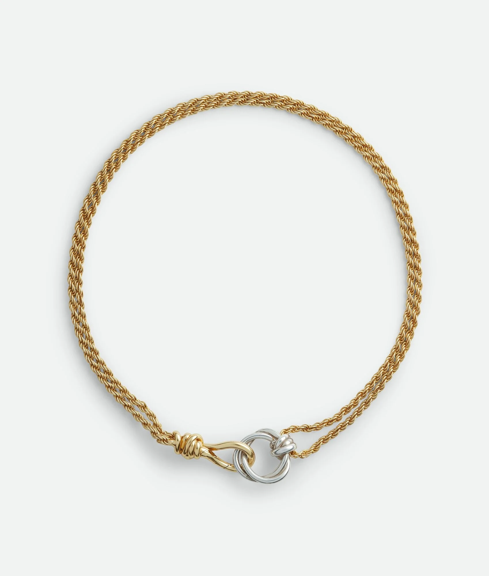 Necklace with signature knot crafted in contrasting 18k gold-finished sterling silver. Product details • 18k gold-finish sterling silver necklace • Custom-made spring closure • Length: 40 cm | 15.7" Material: Sterling silver • Color: Silver/Yellow Gold Made in: Italy