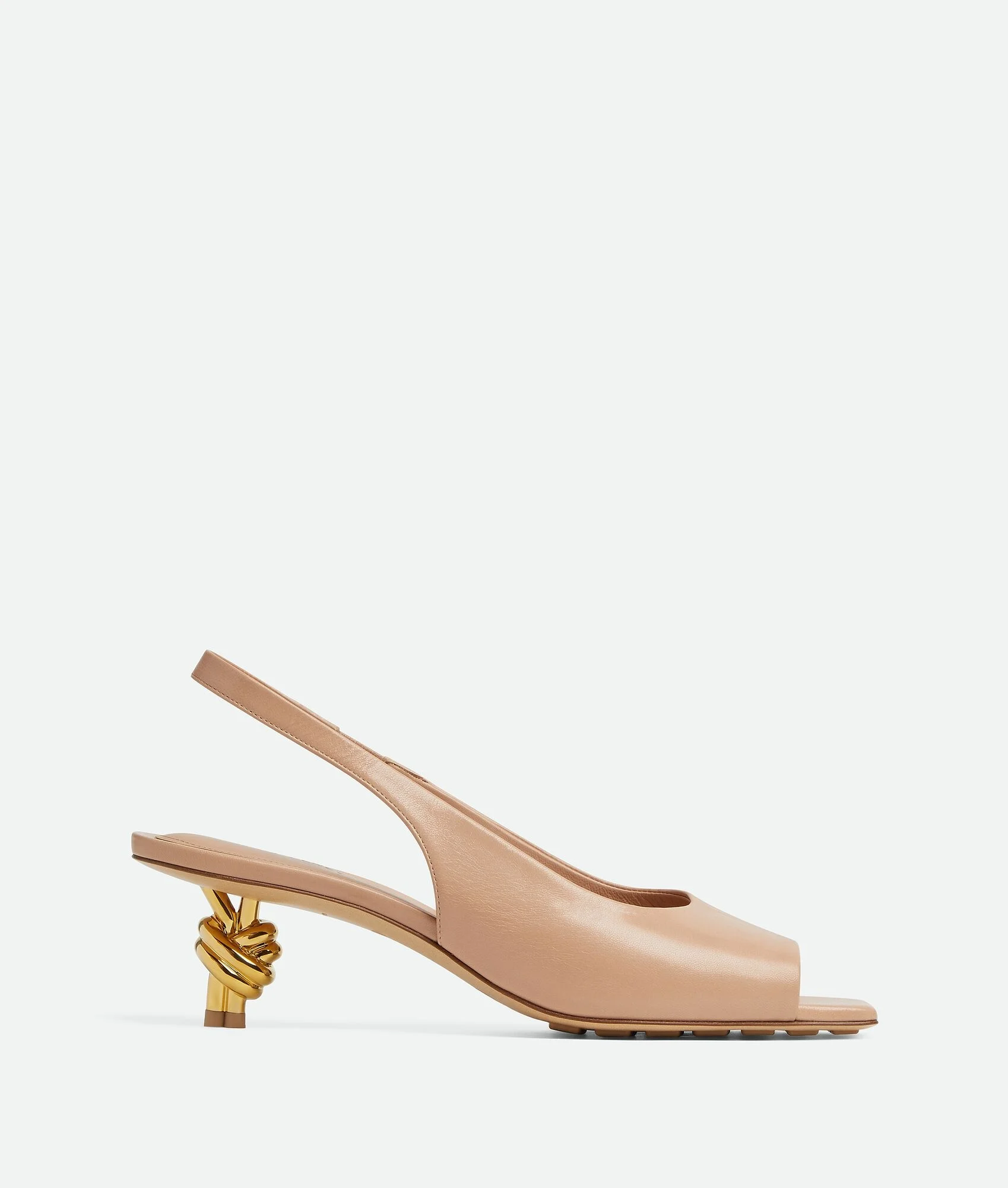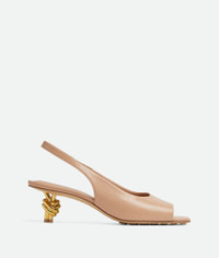 Lambskin leather slingback sandal with signature metal Knot heel. Product Details - Leather slingback sandal - Signature knot galvanized heel - Material: Lambskin - Lining: Lambskin - Color: Cipria - Hardware: Brass finish - Rubber-injected leather outsole - Heel: 4.5 cm | 1.8” - Made in: Italy - Product code: 787011VBSF09912