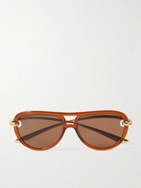Bottega Veneta Eyewear's sunglasses channel retro style with modern, sculptural elements. Made in Japan from gold-tone metal that's molded into the signature knots at the temples, they have glossy acetate aviator-style frames and brown lenses. Details & Care - Brown acetate, gold-tone metal - Come with a case - 100% UV protection