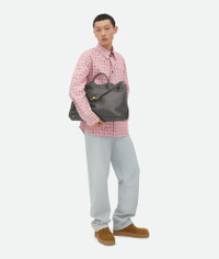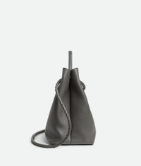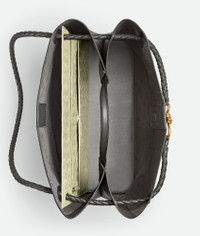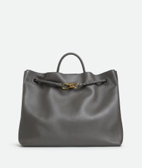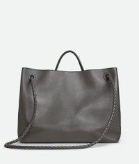 Top handle bag in silky calf leather with signature knot detail and sliding cross-body Product Details - Large silky calfskin top handle bag with sliding cross-body strap - Intrecciato leather internal pocket - Magnetic closure - Material: calfskin - Lining: Suede - Color: Lapilli-Travertine - Hardware: Brass finish - Height: 35 cm | 13.8” - Width: 42 cm | 16.5” - Depth: 18 cm | 7.1” - Handle drop: 9 cm | 3.5” - Strap drop: 45 cm | 17.7” - Made in: Italy - Product code: 806010V4O941339