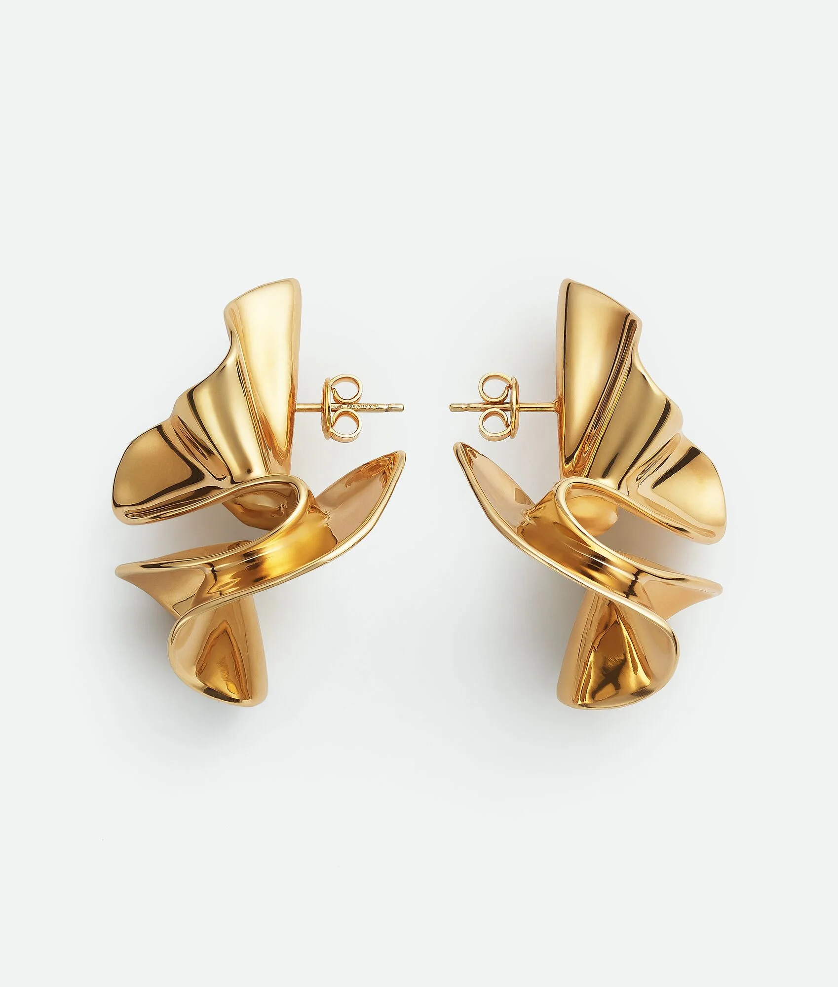 Earrings with sculptural, fluid silhouette in 18k gold-finished sterling silver. Product Details - 18k gold-finish sterling silver large earrings - Pin butterfly closure - Color: Yellow Gold - Due to hygiene-related reasons, this piece may not be returned - Made in: Italy - Product code: 857361VAHU08120 Material - Material: Sterling silver Size & Fit - Height: 45 mm (1.8") - Width: 25 mm (1.0") - Thickness: 35 mm (1.4")