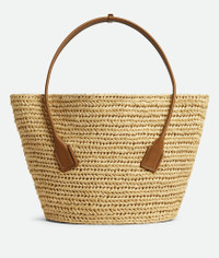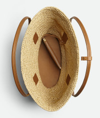 Shoulder bag crafted from woven raffia with leather trimmings. Product details • Large woven raffia and leather shoulder bag • Single detachable interior zipped pocket Material: 95% Raffia, 5% Cotton • Lining: Unlined • Color: Natural/Wood • Hardware: Gold finish • Height: 37.5 cm | 14.8" • Width: 59 cm | 23.2" • Depth: 33 cm | 13" • Strap drop: 23.5 cm | 9.3" Made in: Italy