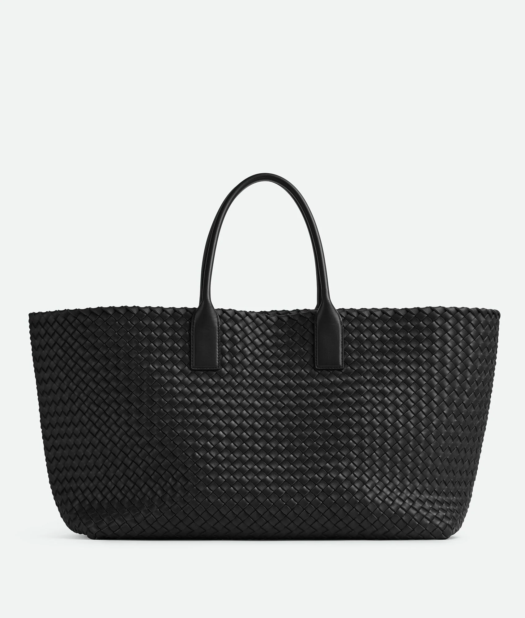 Intreccio leather tote bag. This bag is eligible for Certificate of Craft. Product Details - Large Intreccio leather tote bag - Detachable interior zipped pouch - Material: Lambskin - Lining: Lambskin bonded Intreccio - Color: Black - Hardware: Gold finish - Height: 33 cm | 20.1" - Width: 45 cm | 17.7" - Depth: 20 cm | 7.9" - Handle drop: 18 cm | 7.1" - Made in: Italy - Product code: 608811V1OW18425