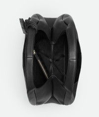 Product Details - Large grained leather shoulder bag - Intrecciato leather detachable mirror charm - Intrecciato internal zipped pocket - Leather tie closure with hidden magnet - Lining: Calf leather - Color: Black - Hardware: Brass finish - Made in: Italy - Product code: 844251V5XH01019 Material - Material: Calfskin Size & Fit - Height: 24 cm | 9.4" - Width: 39 cm | 15.4" - Depth: 18.5 cm | 7.3" - Handle drop: 22 cm | 8.7" - Fits a 13" laptop