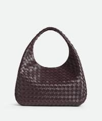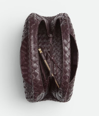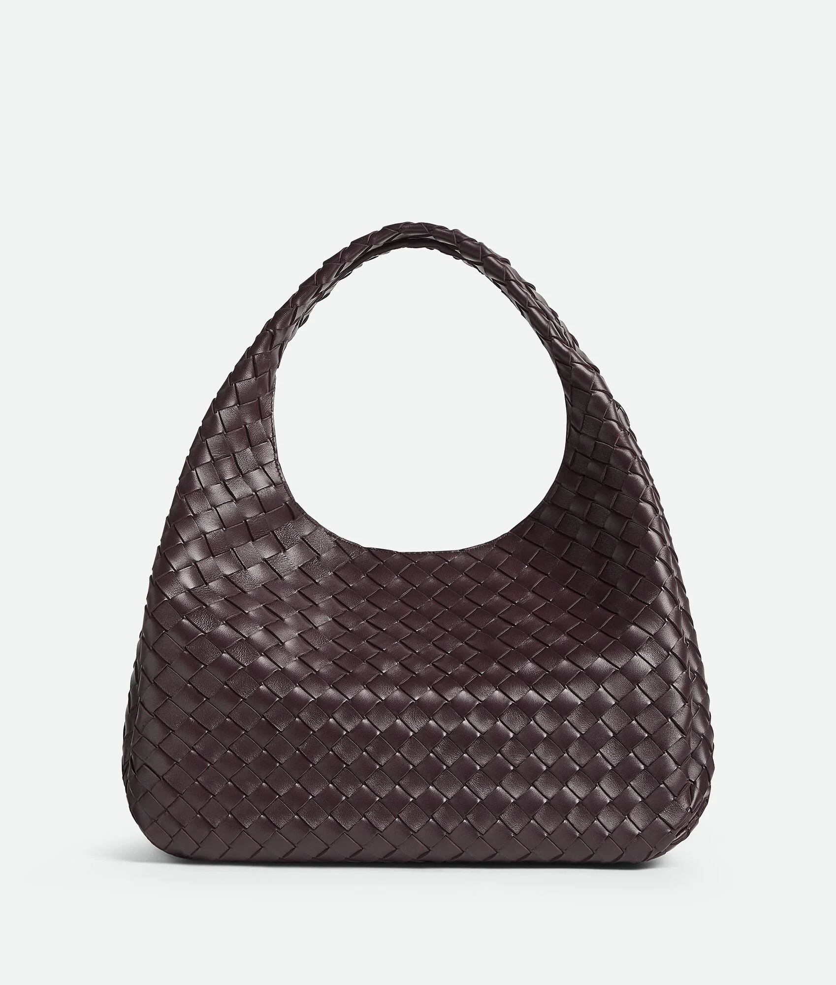 Shoulder bag with archival silhouette in supple Intrecciato leather with tie closure. Product Details - Large Intrecciato leather shoulder bag - Internal zipped pocket - Leather tie closure with hidden magnet - Lining: Unlined - Color: Dark Barolo - Hardware: Brass finish - Made in: Italy - Product code: 844250V4SC02264 Material - Material: Lambskin Size & Fit - Height: 24 cm | 9.4" - Width: 39 cm | 15.4" - Depth: 18.5 cm | 7.3" - Handle drop: 25 cm | 9.8" - Fits a 13" laptop