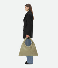 Shoulder bag with Intrecciato craftsmanship in calf leather. Product Details - Large Intrecciato leather shoulder bag - One internal zipped pocket - Flap closure secured with magnet - Material: calfskin - Lining: Calfskin - Color: Travertine - Hardware: Brass finish - Height: 24 cm | 9.4" - Width: 54 cm | 21.3" - Depth: 13 cm | 5.1" - Handle drop: 27 cm | 10.6" - Made in: Italy - Product code: 763970V3IV12929