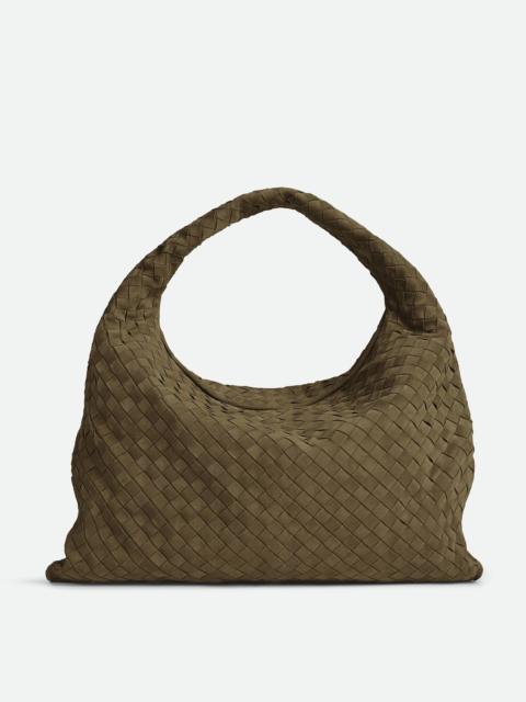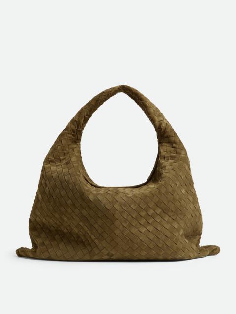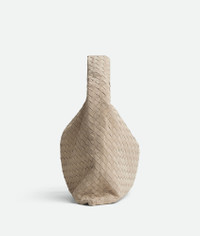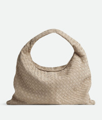 Shoulder bag with Intrecciato craftsmanship in smooth suede. Product Details - Large Intrecciato suede shoulder bag - One internal zipped pocket - Flap closure secured with a magnet - Material: Calfskin - Lining: Calf leather - Color: Ecru - Hardware: Brass finish - Height: 24 cm | 9.4" - Width: 54 cm | 21.3" - Depth: 13 cm | 5.1" -Handle drop: 27 cm | 10.6" - Made in: Italy - Product code: 763970V1QE39614