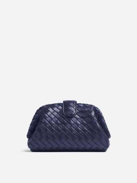 Lauren 1980 clutch in padded Intrecciato leather with tubular leather braided metal Product details • Padded Intrecciato leather teen clutch with leather braided metal chain • Single compartment • Magnetic flap closure Material: Calfskin • Lining: Lambskin • Color: Duke • Hardware: Brass finish • Height: 16.5 cm | 6.5" • Width: 31.5 cm | 2" • Depth: 11 cm | 4.3" • Strap Drop: 28 cm | 11" Made in: Italy