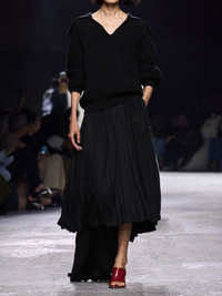 Bottega Veneta's Spring '25 collection puts a playful, whimsical spin on power dressing. Debuted on the runway, this midi skirt is made from twill that's sharply accordion pleated and has a layered panel at one side, creating an off-kilter design. It moves beautifully as you walk. Details & Care - Black twill - Concealed hook and zip fastening at side - 100% polyester - Dry clean