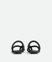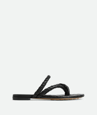 Flat lambskin leather sandal with coaxial thong straps. Product Details - Leather flat thong sandal with coaxials - Insole with high frequency Intreccio pattern - Material: Lambskin - Unlined - Color: Black - Rubber-injected leather outsole - Made in: Italy - Product code: 786913V3Y501000