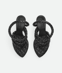 Lambskin leather sandal with coaxial thong straps. Product Details - Leather thong sandal with coaxials - Insole with high frequency Intreccio pattern - Material: Lambskin - Unlined - Color: Black - Rubber-injected leather outsole - Heel: 9 cm | 3.5” - Made in: Italy - Product code: 786917V3Y501000