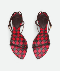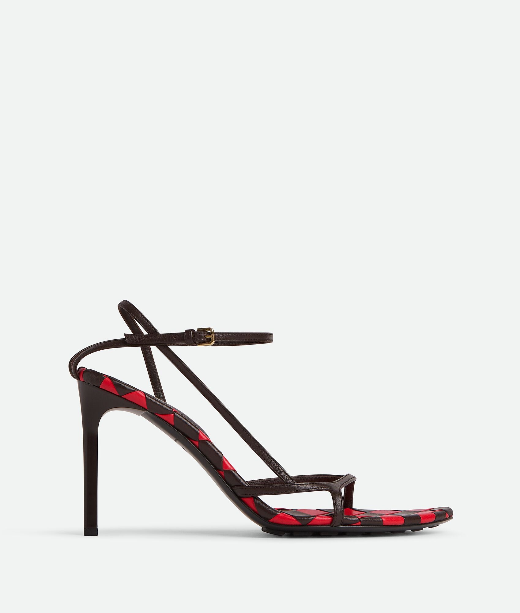 Ankle strap sandal in soft lambskin featuring an Intrecciato check bicolour insole. Product Details - Leather ankle strap sandal - Insole in Intrecciato check bicolor - Material: Lambskin - Lining: Lambskin - Color: Fondant/Vernis - Heel: 9 cm | 3.5" - Made in: Italy - Product code: 777891V2ED22141