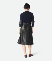 A-line skirt in midweight soft nappa leather with ruffle detail. Product Details - Midweight soft nappa leather A-line skirt - Ruffle detail - Zipper closure - Color: Black/Navy - Made in: Italy - Product code: 837452V5BX01112 Size & Fit - Model is 176 cm | 5'9" and is wearing a Bottega Veneta size 38