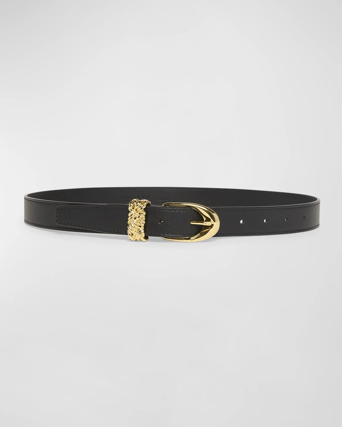 - Bottega Veneta leather belt with 14-karat solid gold buckle - Approx. 1.0"W - Cut to size - Adjustable fit - Beveled frame buckle - Leather/14-karat solid gold - Made in Italy
