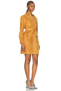 Details - Self: 100% lambskin - Lining: 100% cotton - Made in Italy - Professional leather cleaning only - Partially lined - Front button snap closure - 4-front flap pocket styling - Optional belt at waist - Genuine suede fabric - Our Style No. BOTT-WD103 - Manufacturer Style No. 813139-V4HV0-7004